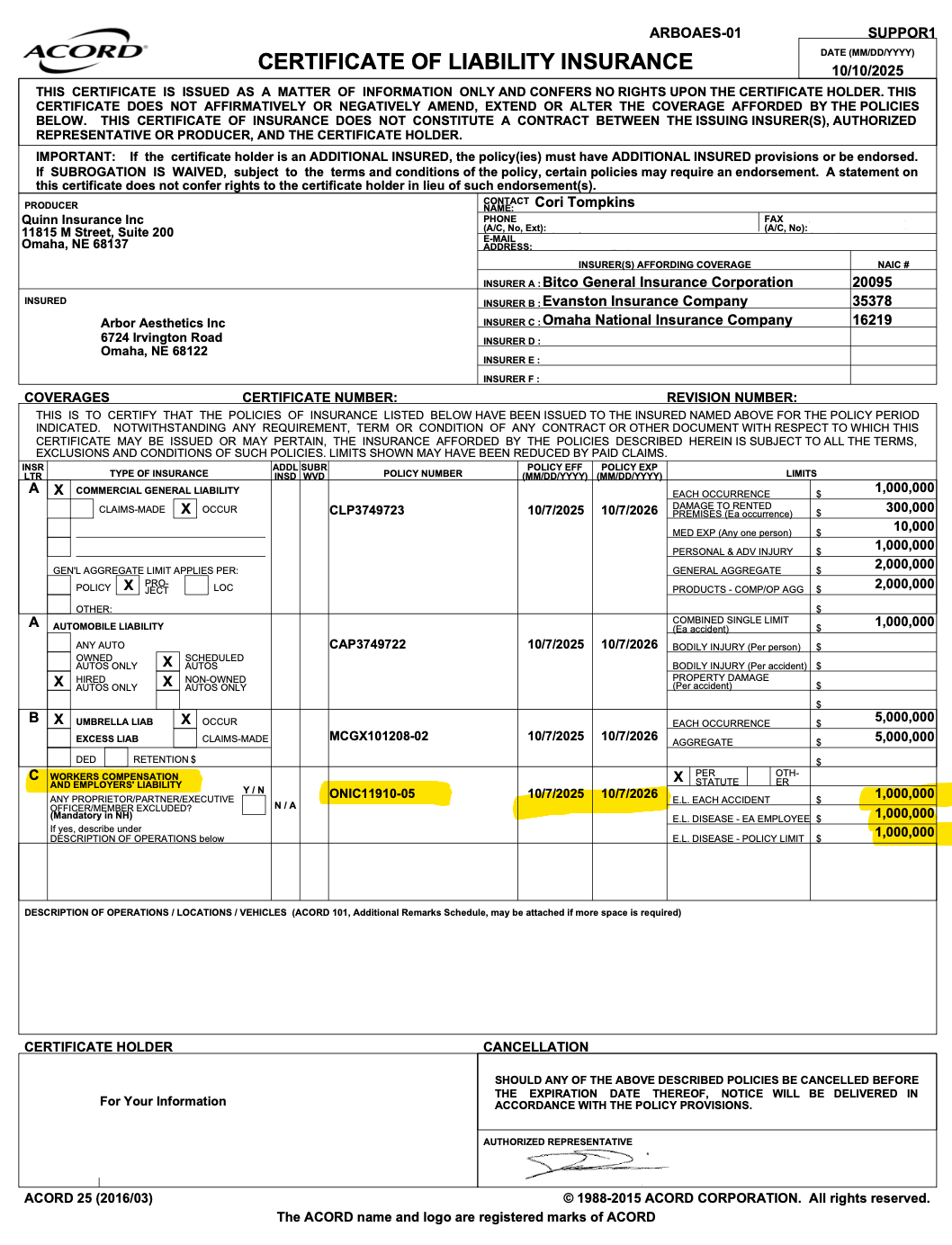 This type of policy is designed for businesses with no employees. It allows the business owner to obtain a certificate of insurance, but it does not provide coverage for employees working on a job site.